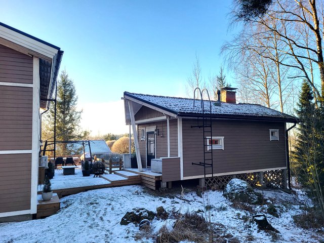 - Sauna talon vieressä olevassa pihasaunarakennuksessa.