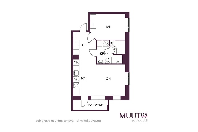 - Huoneiston todellinen pinta-ala voi olla yhtiöjärjestyksessä, isännöitsijäntodistuksessa ja esitteessä mainittua pienempi tai suurempi. Hinta ei ole pinta-alaperusteinen. Yhtiöjärjestyksen mukainen huoneistoselitelmä: 2H+KT+S
