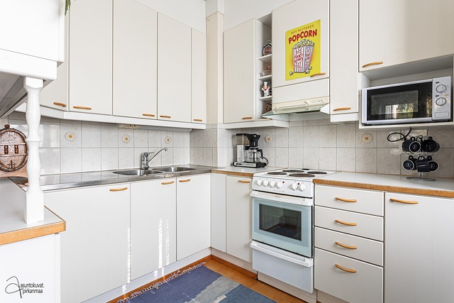- Liesi, jääkaappipakastin, liesituuletin, ja kiinteät valaisimet
