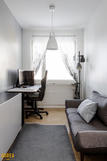 Toinen makuuhuoneista toimii hyvin vaikkapa työhuoneena. Kompakti kylpyhuone, josta löytyy liitännät pyykinpesukoneelle ja remontista ei tarvitse huolehtia. Rauhallinen kaukolämpöyhtiö omalla tontilla. Vieressä kulkeva Heinätorinkatu katkeaa tämän korttelin jälkeen, joten ei ei läpikulkuliikennettä.