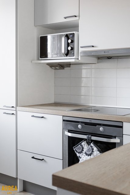 - Keittiö uusittu 2008 ja 2021 uusittu Puustellin toimesta kaappien ovet. Samalla lisätty yksi ”piilolaatikko” aterimille, allas, hana ja liesituuletin. Kylmälaite integroitu. Liesitaso (induktio), erillisuuni integroitu apk.