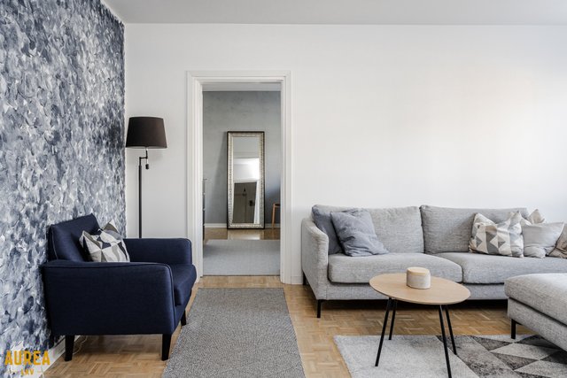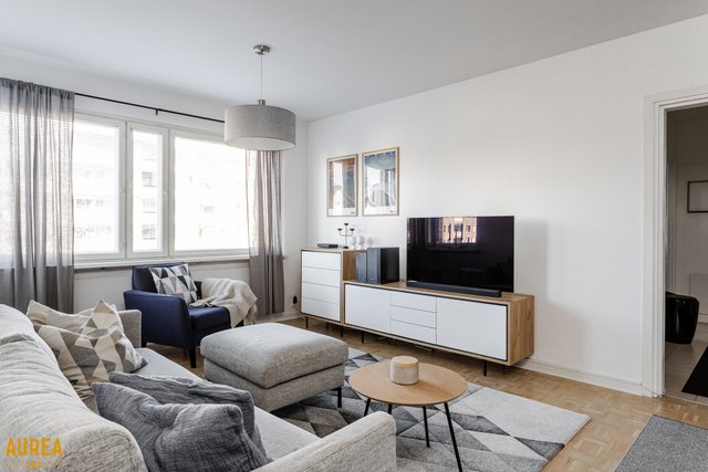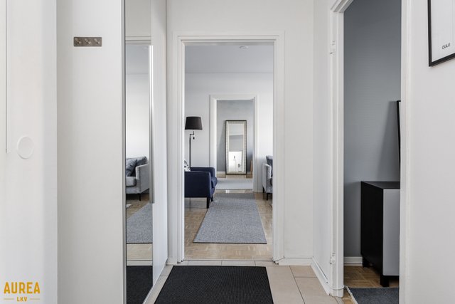 Fiiliksen aistii jo eteisessä: näkymä olohuoneesta aina makuuhuoneeseen asti on kodikas ja selkeä. Puustellin linjakas keittiö tuo asuntoon ajatonta ilmettä. Tyylikkäät tasot ja hyvät säilytystilat. Ruokailuryhmälle jää hyvin tilaa, eikä keittiö tunnu ahtaalta. Olohuoneessa on toimiva pohja mahdollistaen kalustamisen monin eri tavoin. Näkymä olohuoneesta länteen. Isommassa makuuhuoneessa kiintokaapistot säilytykselle, sekä tilava ikkunallinen vaatehuone.
