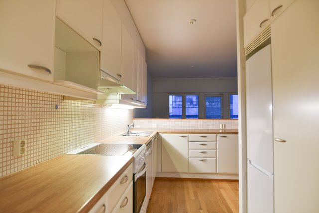 - Jääkaappipakastin, astianpesukone, liesituuletin, ja liesi