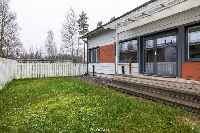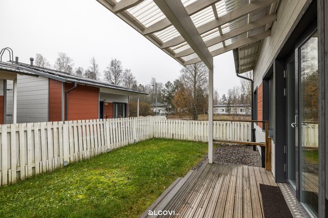 Saarekkeellinen avokeittiö ruokailutilan ja olohuoneen kanssa luo valoisan yhteisen tilan, jossa kelpaa viettää aikaa. Olohuoneesta on kulku aidatulle pihalle, jossa on terassi ja nurmea. Kaikki kolme makuuhuonetta ovat toimivan kokoisia, ja säilytystiloja löytyy kiintokaapistojen sekä vaatehuoneen muodossa. Puupaneelilla viimeistelty kylpyhuone kätkee sisäänsä kaikki kaipaamasi toiminnot: tilaa peseytymiseen sekä arjen pyykkihuoltoon. Oma sauna viimeistelee asumisviihtyvyyden! Säilytystiloihin kaivattu lisä löytyy sisäänkäynnin yhteydestä, jossa sijaitsee ulkovarasto.