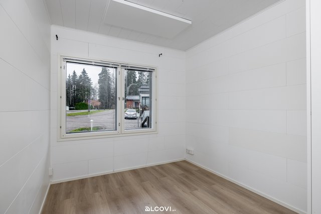 - Makuuhuoneita on 3 kpl. Lattiat on laminaattia, seinät paneloitu. Kahdessa makuuhuoneessa kiintokaapistot, yhden makuuhuoneen yhteydessä kompakti vaatehuone.
