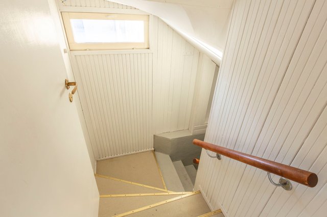 Yläkerrassa kaksi makuuhuonetta, wc sekä säilytys- ja varastotilaa, keskikerroksessa tilava keittiö, jossa runsaasti säilytys- ja työskentelytilaa, ruokailuhuone, olohuone, wc, eteinen ja käynti julkisivun puolella olevalle kuistille, kellarikerroksessa kodinhoitotilaa, pukeutumishuone, pesutila ja sauna puukiukaalla sekä varastotilaa.