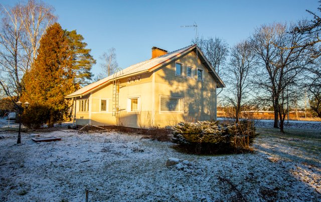 - Pieni terassi pääoven edessä ja lasikuisti julkisivun puolella.