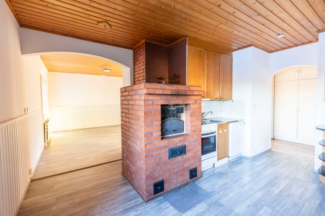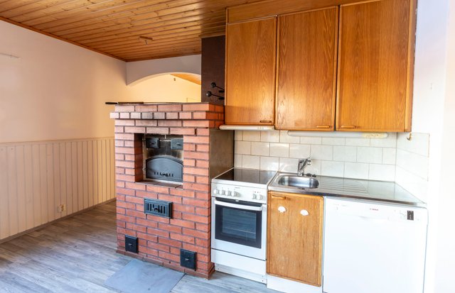 - Pönttömuuri olohuoneessa ja leivinuuni keittiössä