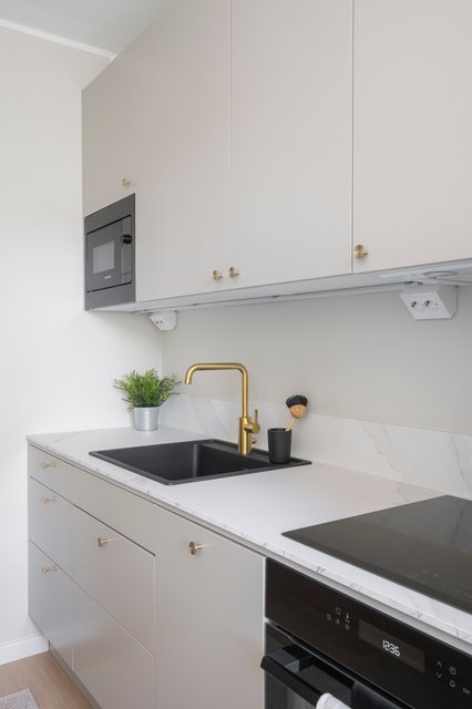- Jääkaappipakastin, liesi, liesituuletin, mikroaaltouuni, ja astianpesukone