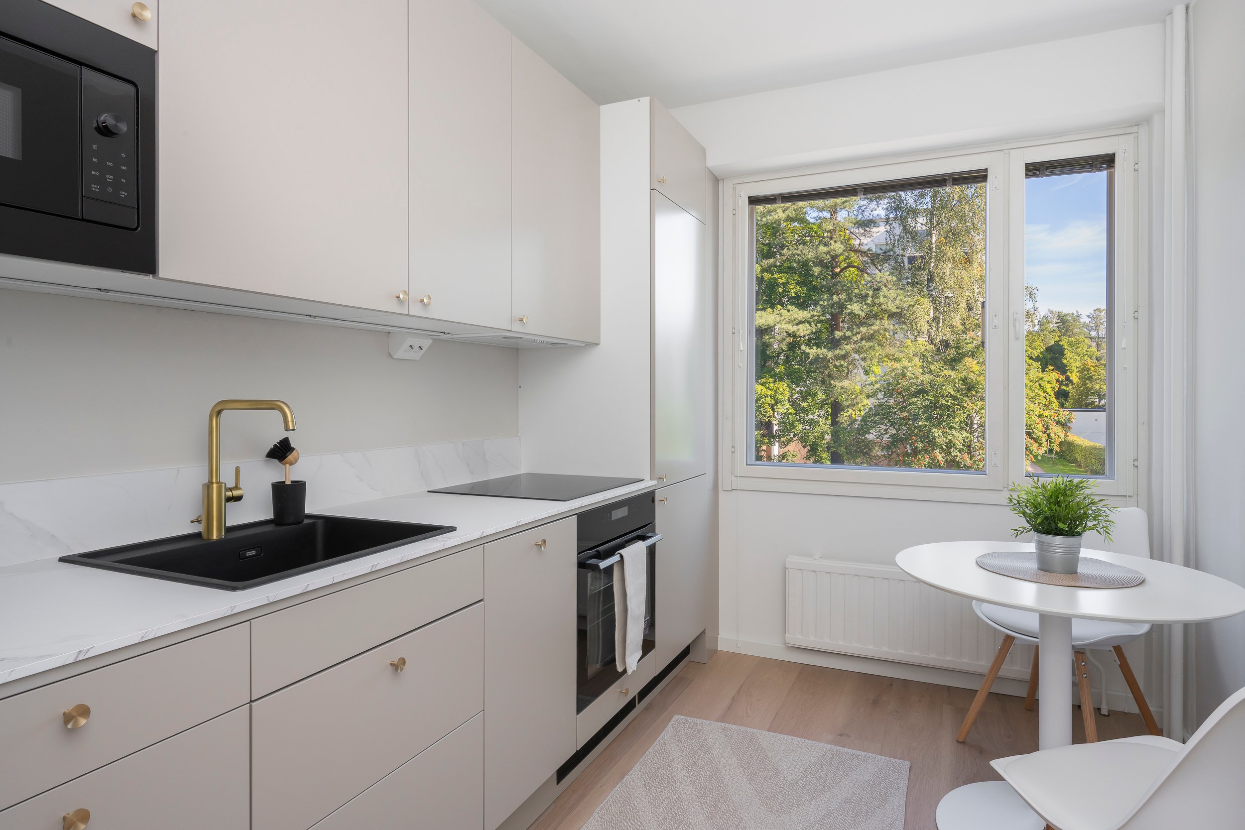 Asunnossa on tehty laaja saneeraus jossa on uusittu keittiö kodinkoneineen, kylpyhuone ja huoneiston kaikki pinnat ja kaapistot uusittu sekä sähköt saneerattu, käyttövesiputket on asunnon osalta myös vaihdettu. Lasitettu parveke suuntaa vehreälle sisäpihalle. Huoneisto on talon toisessa kerroksessa.