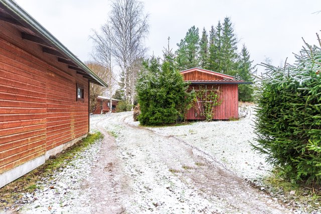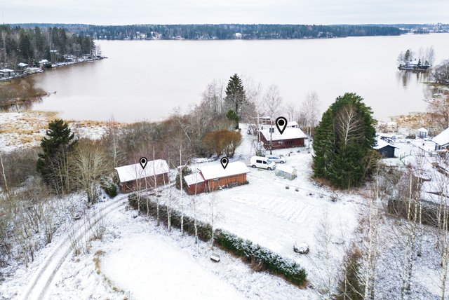 Päärakennuksen lisäksi tontilla on ulkorakennus jossa on vierashuone. Kiinteistölle tulee sähkö, ja vesi- ja viemäriliittymät ovat tontin rajalla. Tämä viehättävä lomakohde tarjoaa mahdollisuuden nauttia luonnon rauhasta ja kauniista järvimaisemista ympäri vuoden.