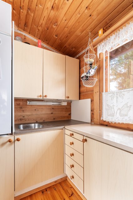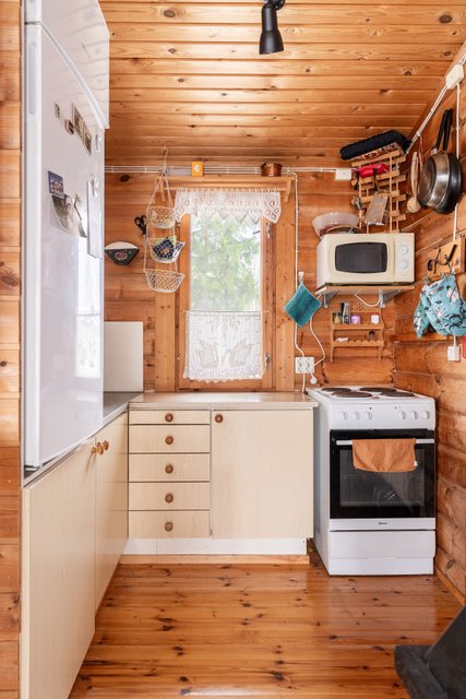 alkovi, keittiö, olohuone, sauna ja kesähuone