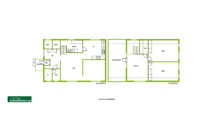 - Alakerrassa lattia parketti yläkerrassa laminaatti.