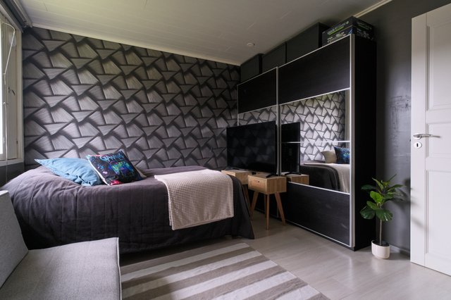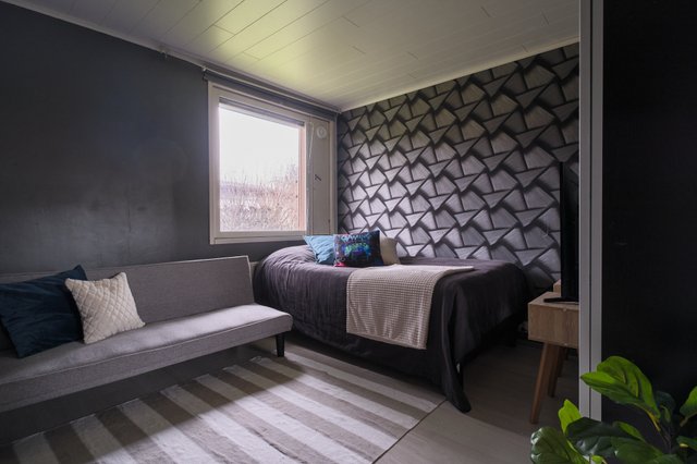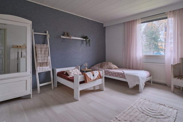 - Yhteensä neljä makuuhuonetta, joista yksi sijaitsee toisessa päässä taloa. Päämakuuhuoneen yhteydessä on vaatehuone.