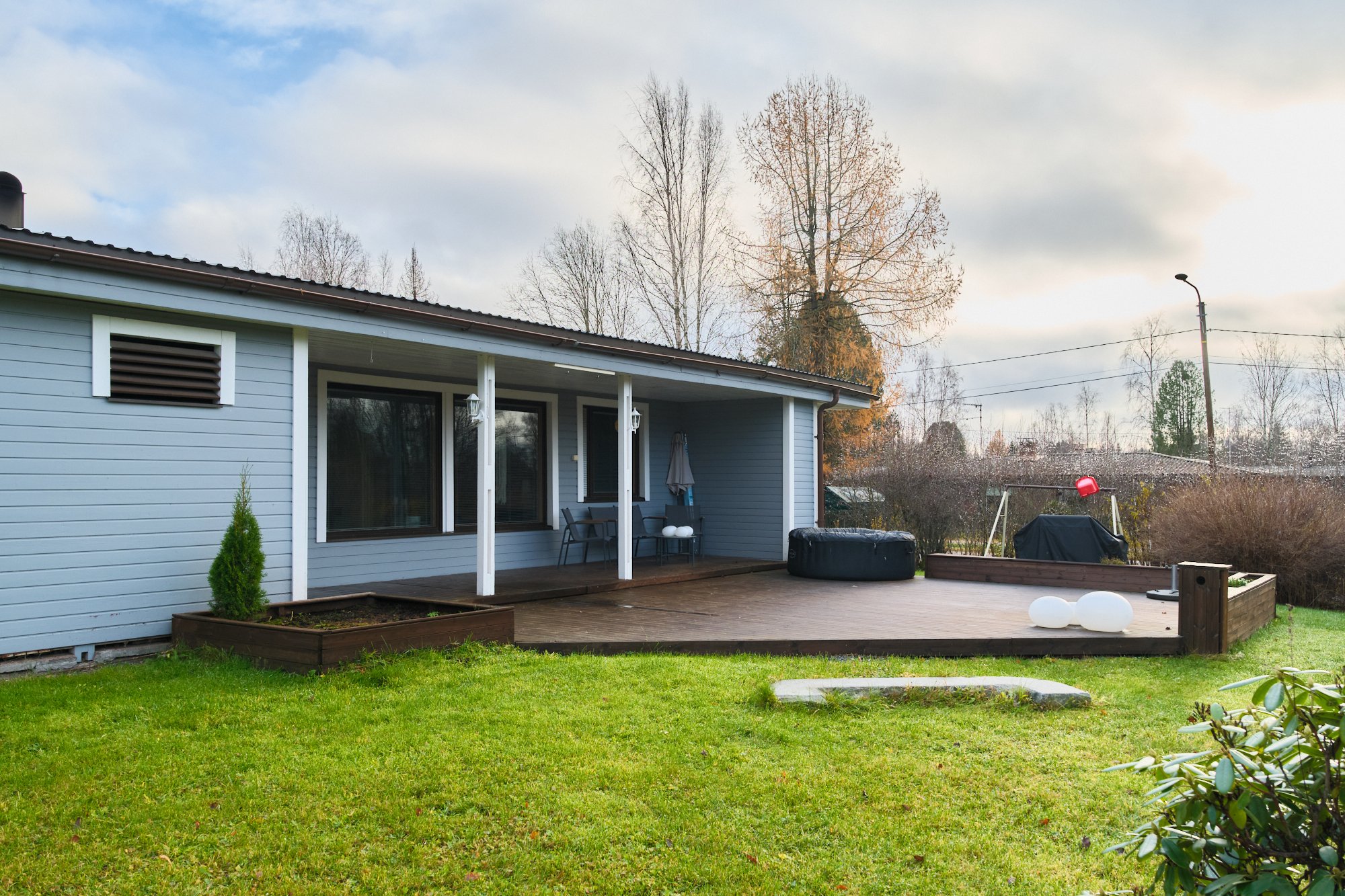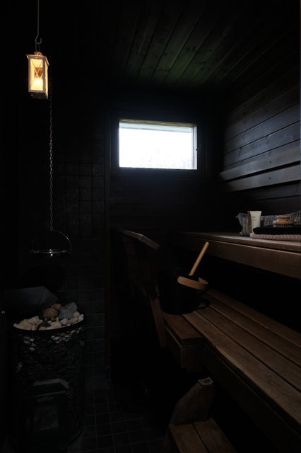 Sauna tarjoaa tunnelmalliset löylyt puukiukaan ansiosta, ja kodinhoitohuoneen kautta hoituvat pyykkihuollot vaivattomasti. Pihapiiri on suojaisa ja vehreä, ja etupihalla on tilaa useammalle autolle.