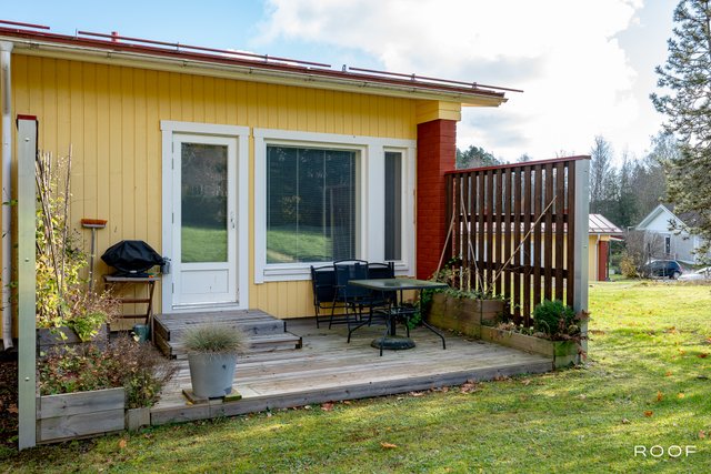EKENÄS SNAPPERTUNA Radhusgavellägenhet på naturnära läge i Tunalund intill Tunahemmet. Bolaget är välomskött och stora grundrenoveringar gjorda 2015-2016 då bl.a. tak, fönster och dörrar är förnyade, ny brädfodring och tilläggsisolerat. Själva bostaden är fräsch och ytrenoverad 2014. Bolaget har år 2023 installerat jordvärme och är anslutet till Karis Telefons optofiber. Härliga promenadmöjligheter bl.a. längs kärleksstigen som går ända till Raseborgs slottsruiner. Raseborgså strömmar genom området.