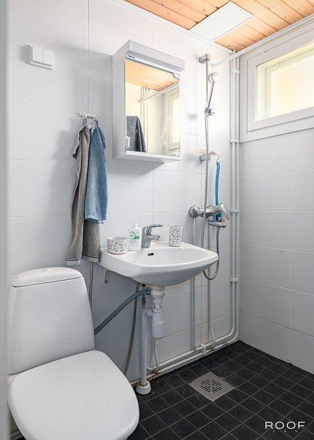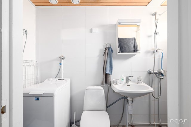 - WC-istuin, suihku, pesukoneliitäntä, ja lattialämmitys