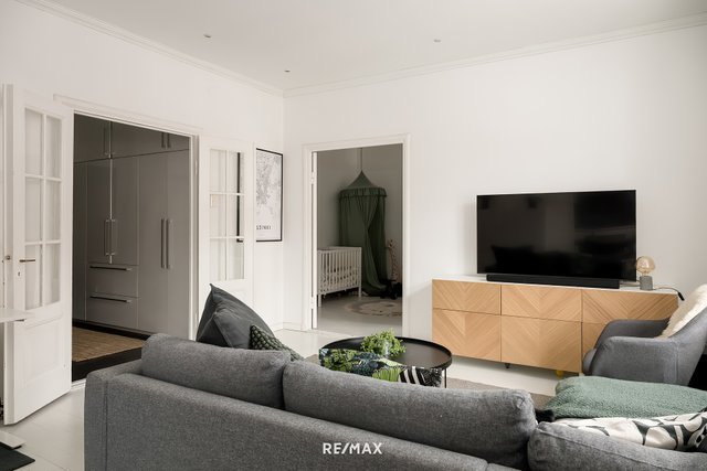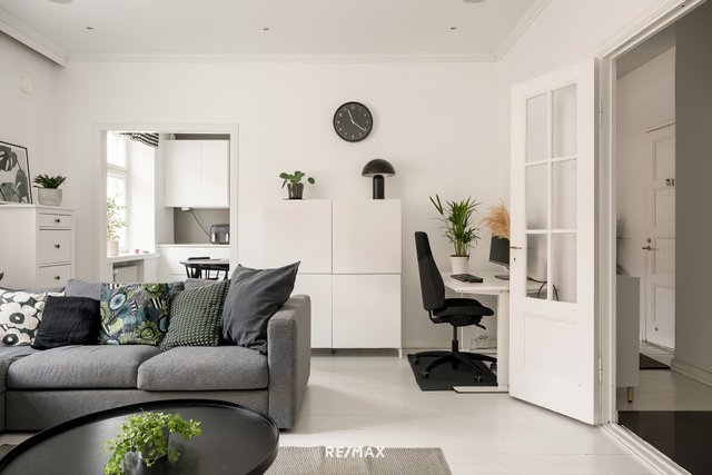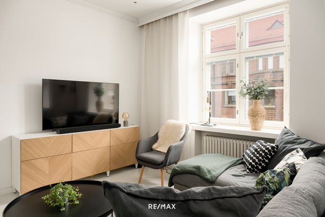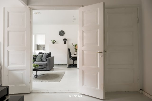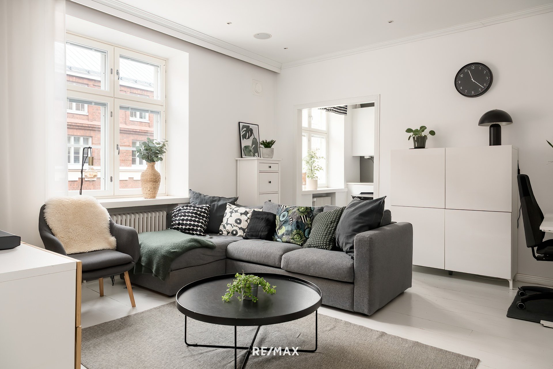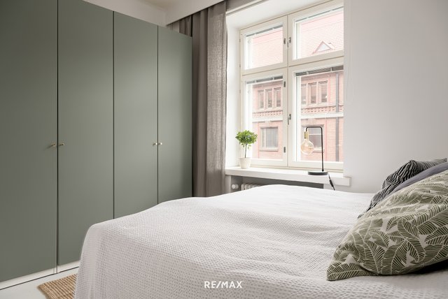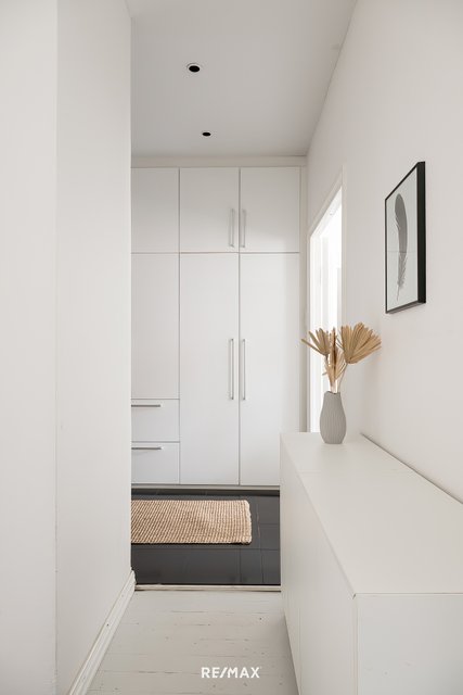 Tämä tyylikkäästi toteutettu koti vapautuu nyt seuraavalle omistajalleen. Korkea huonekorkeus hurmaa heti asuntoon sisään astuttaessa. Asunnossa on vuonna 2018 uusittu erillinen keittiö, josta löytyy hyvin kaappi- ja laskutilaa. Keittiön vieressä on tilava vaatehuone/varastotila. Tilavassa eteisessä on isot kaapistot ja asunnosta löytyy muutenkin paljon säilytystilaa. Iso makuuhuone on jaettu pienillä ikkunoilla varustellulla väliseinällä kahdeksi huoneeksi, jolloin toisen huoneen saa kivasti esim. lastenhuoneeksi tai työhuoneeksi.