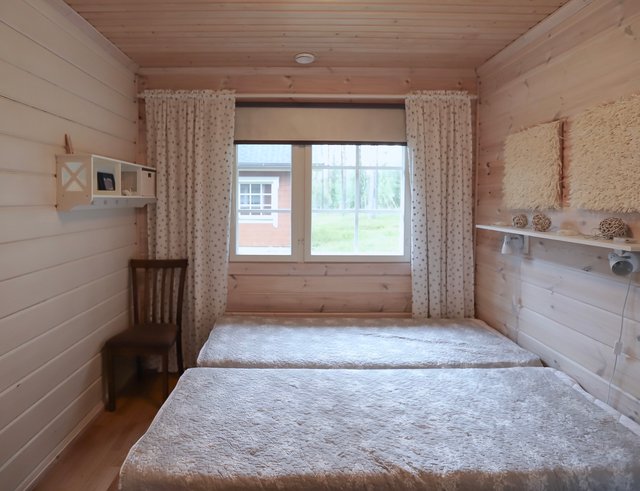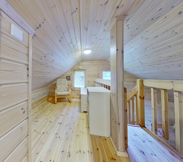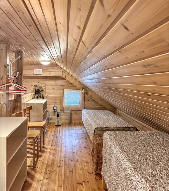 - Parvella hyvin lisätilaa sängyille ja työskentelytilaksi. Mäntylankkulattia, paneeliseinät ja -katto.
