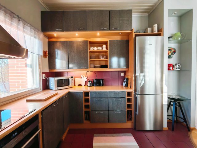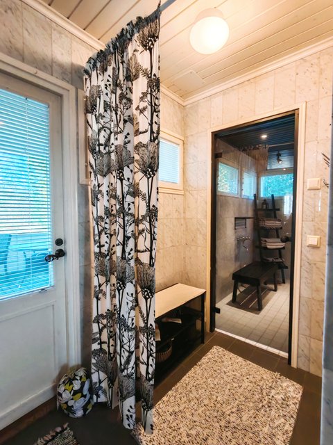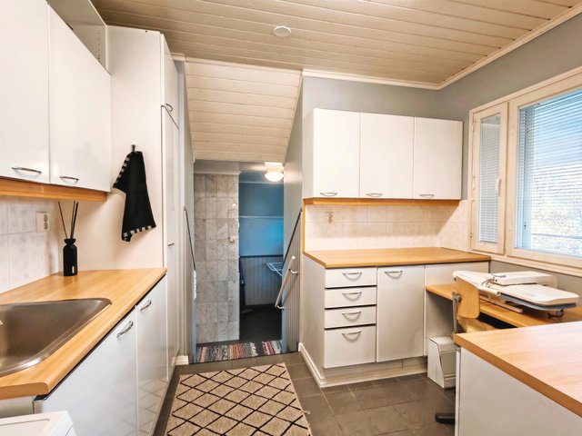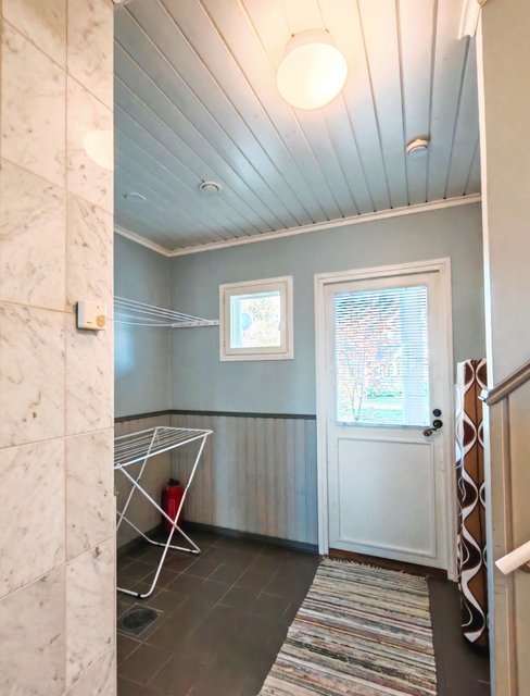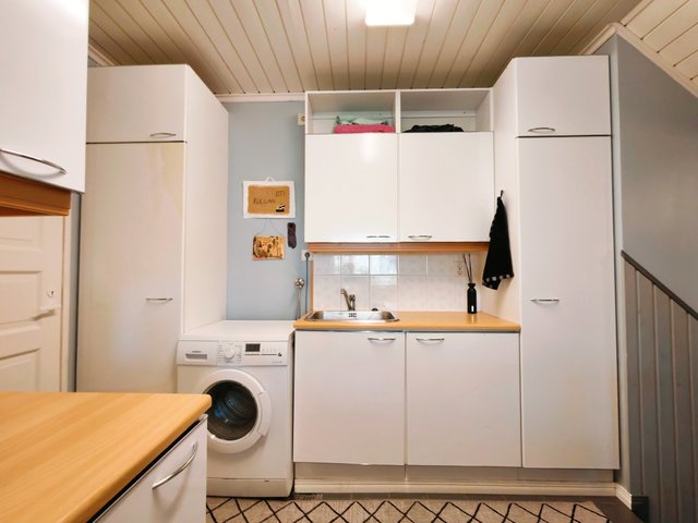 - Pesukoneliitäntä, lattialämmitys, pöytätaso, pesuallas, lattiakaivo, ja keskuspölynimuri