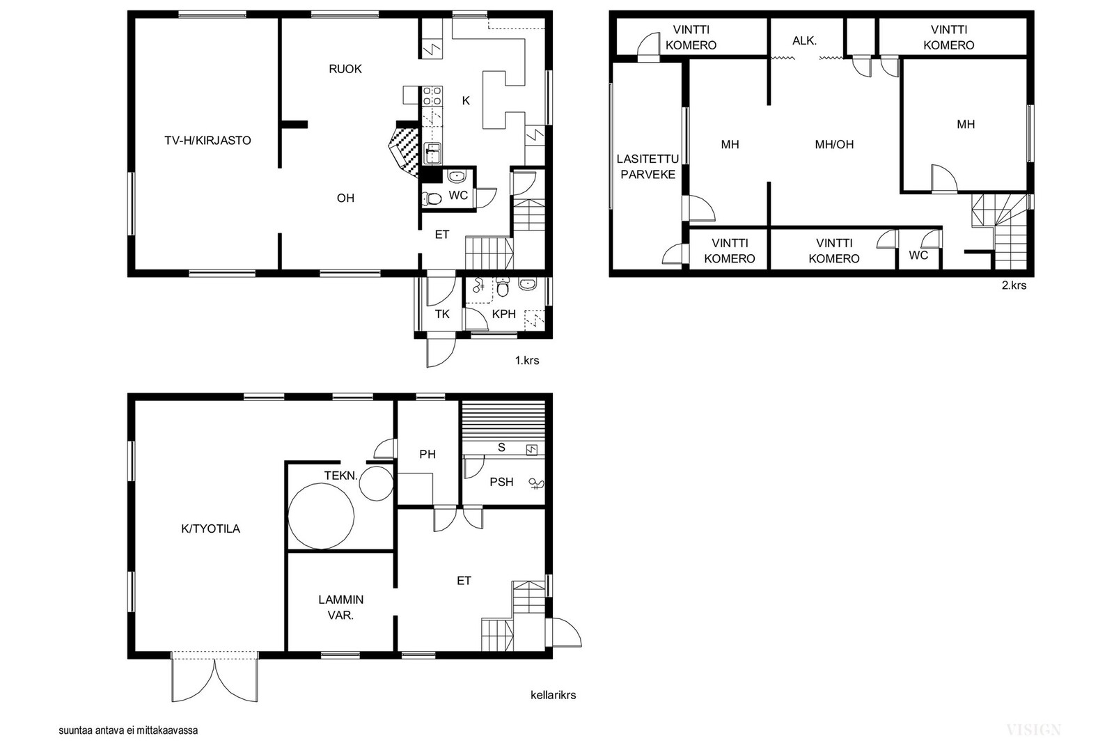 - Kerrosala ja kokonaispinta-ala 331m2 Rakennus- ja Huoneistorekisteriotteen mukaan. Myös huoneistoalatieto on saatu Rakennus- ja Huoneistorekisteriotteesta. Pinta-alaa ei ole tarkistusmitattu. Mainittu pinta-ala saattaa tämän ikäisessä kohteessa poiketa olennaisesti nykyisten standardien mukaan laskettavasta asuinpinta-alasta. Todellinen asuinpinta-ala voi olla esitteessä mainittua pienempi tai suurempi.