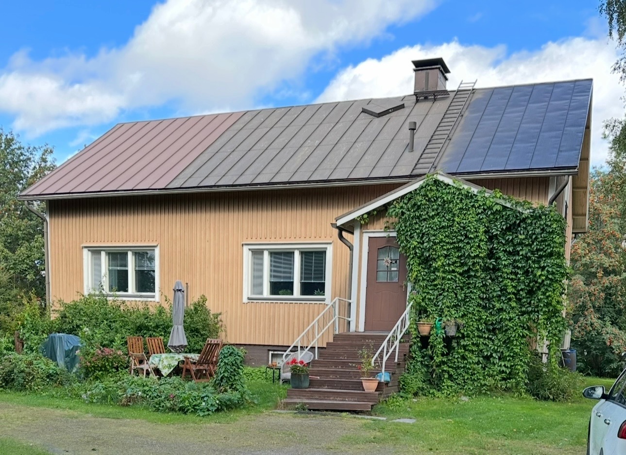 - Olohuoneessa kokolattiamatto, katossa puupaneeli. Todella reilunkokoinen olohuone, mihin mahtuu hyvin erillinen ruokailutila, Olohuoneen sydämenä toimii varaava vuolukivitakka.