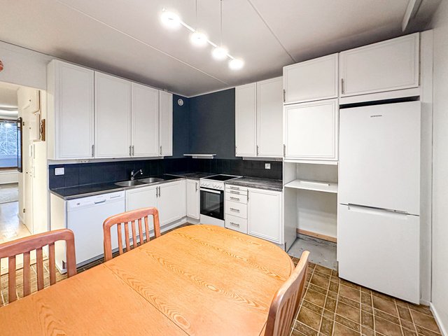 - Jääkaappipakastin, uuni, liesi, ja astianpesukone