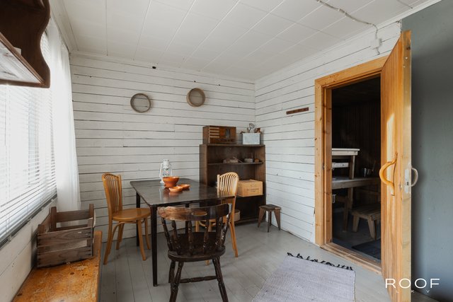 Kolme makuuhuonetta, tilava olohuone ja käytännöllinen keittiö muodostavat kodin toimivan ytimen. Pihasauna puukiukaineen tarjoaa perinteiset ja mutkattomat löylyt arjen rentoutumiseen, ja asuinrakennuksen oma sauna tuo lisämukavuutta päivittäiseen käyttöön. Kellarikerros tarjoaa lisätilaa varastointiin tai harrastuksille ja on käytännöllinen lisä monenlaisiin tarpeisiin.
