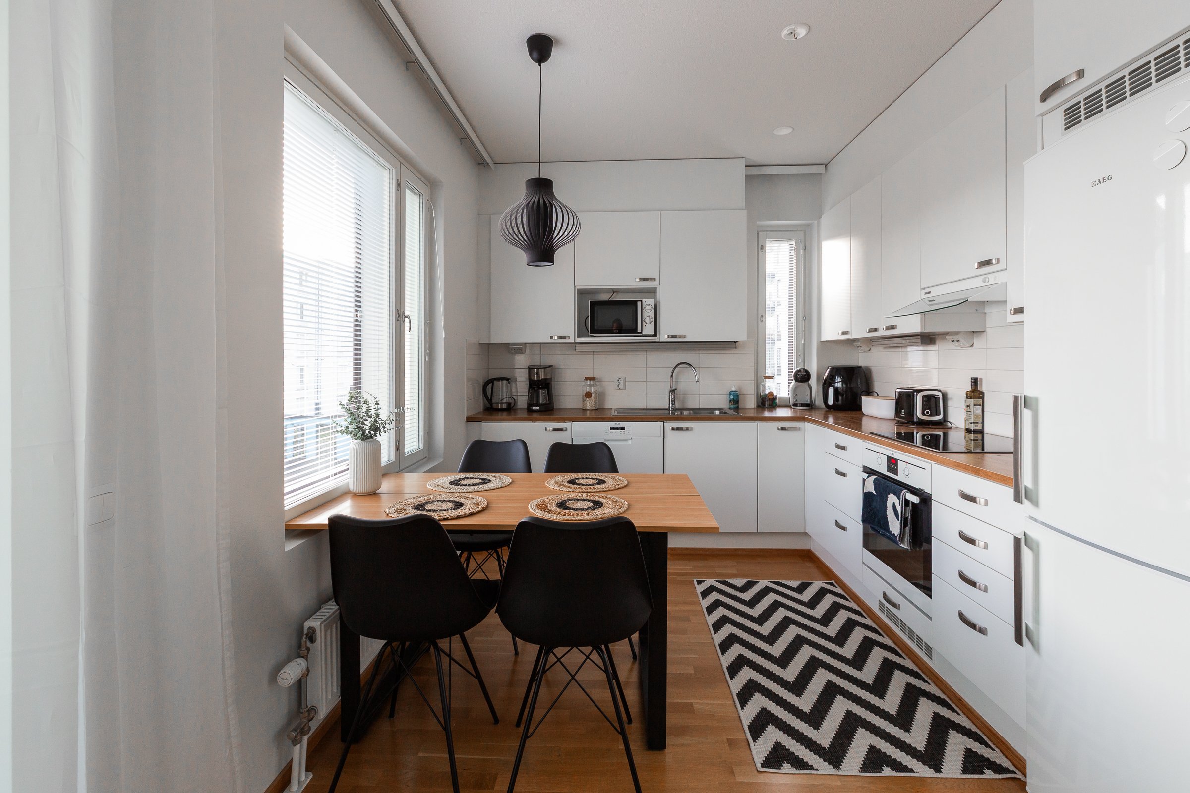 - Jääkaappipakastin, erillisuuni, astianpesukone, ja liesituuletin
