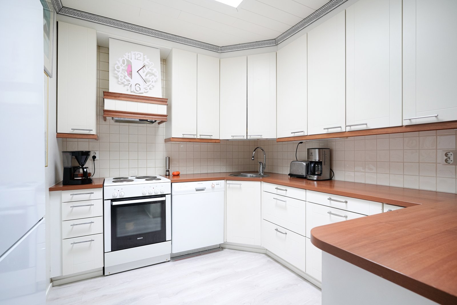 Tämä valoisa ja kodikas päätyasunto Veikkolassa yhdistää rauhallisen asumisen ja toimivan arjen. Suuret ikkunat tuovat olohuoneeseen runsaasti luonnonvaloa ja tila yhdistyy saumattomasti ruokailutilan kautta keittiöön. Tässä valoisassa keittiössä on runsaasti säilytystilaa, keittiöniemeke sekä kattoikkuna.