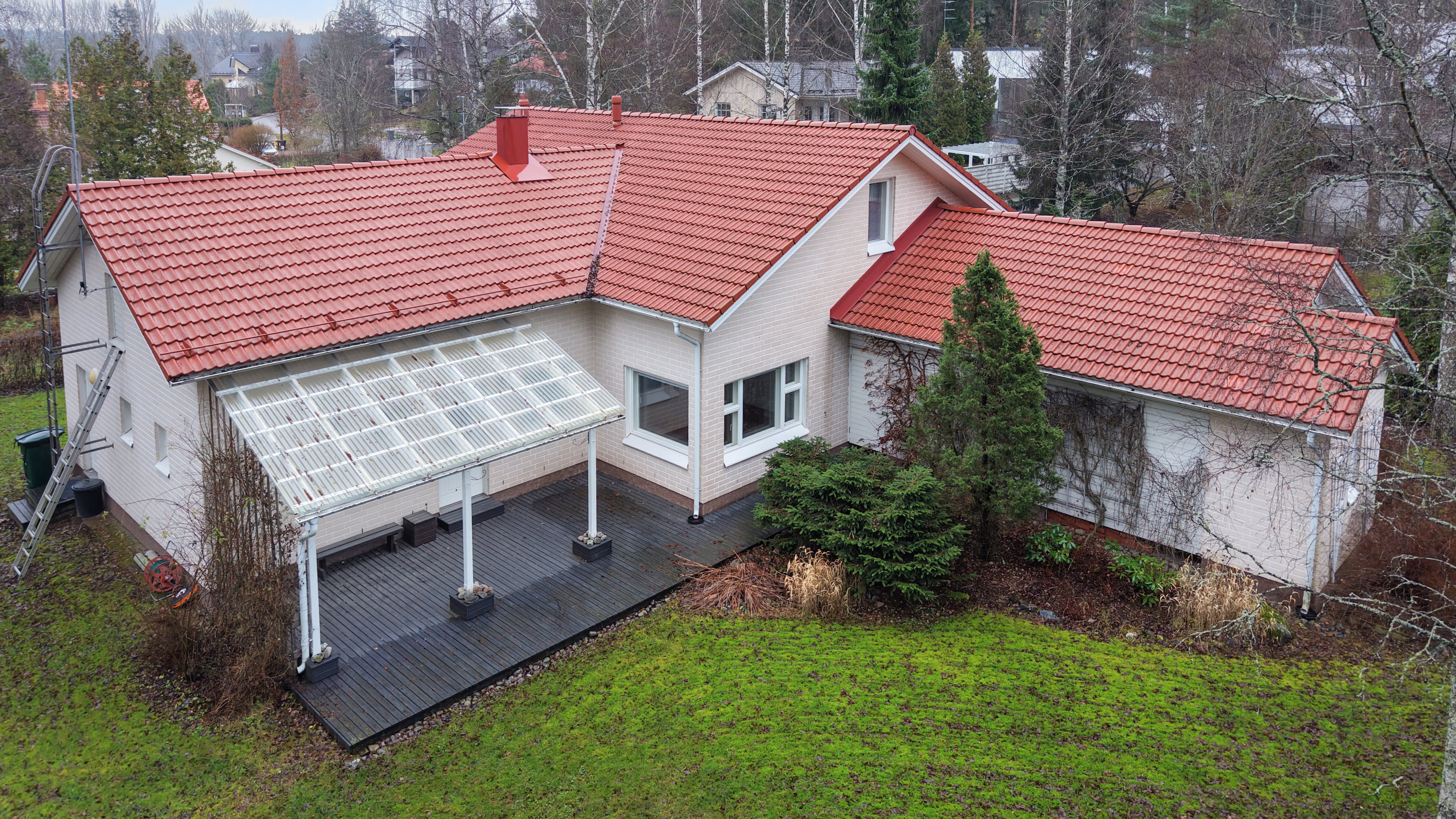 - Tässä kodissa on ihastuttava terassi, jonne pääsee suoraan saunasta kodinhoitohuoneen kautta. Terassin valokatteet on uusittu ja puuosat maalattu vuonna 2021, joten se on kunnossa ottamaan uudet omistajat vastaan. Tämä terassi tarjoaa täydellisen paikan rentoutumiseen ja ulkoilmasta nauttimiseen