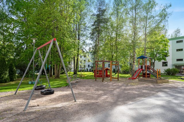 Sijainti on täydellinen perheelle, rauhallinen ja vehreä ympäristö, mutta silti kaikki tarvittavat on lähellä. Kävelymatkan päästä löytyvät muun muassa K-supermarket, koulut, päiväkodit sekä urheilupuisto, jäähalli, terveyskeskus, jotka tekevät arjesta sujuvaa ja elämisestä helppoa.