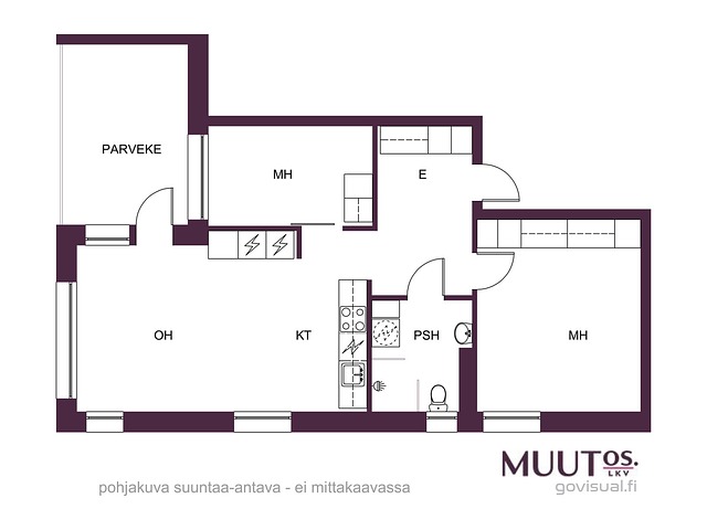 - Pinta-ala ei ole tarkistusmitattu. Pinta-ala saattaa poiketa olennaisestikin laskettavasta pinta-alasta. Todellinen pinta-ala voi siis olla esitteessä, yhtiöjärjestyksessä tai isännöitsijäntodistuksella mainittua suurempi tai pienempi. Hinta ei ole pinta-alaperusteinen. Yhtiöjärjestyksen mukainen huoneistoselitelmä: 3h+k