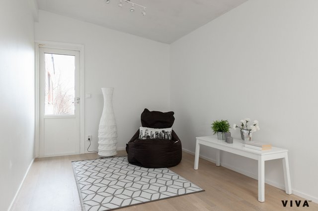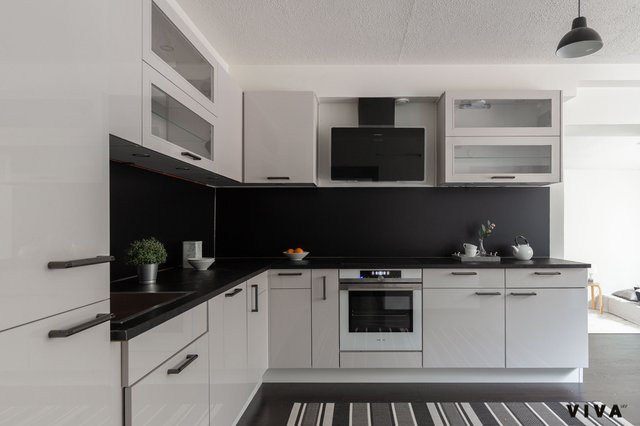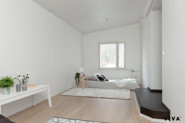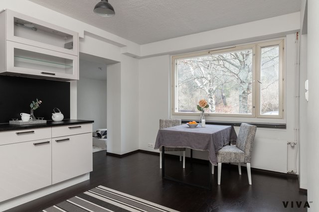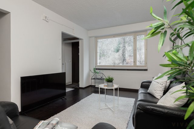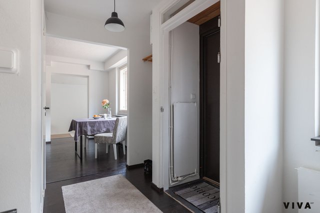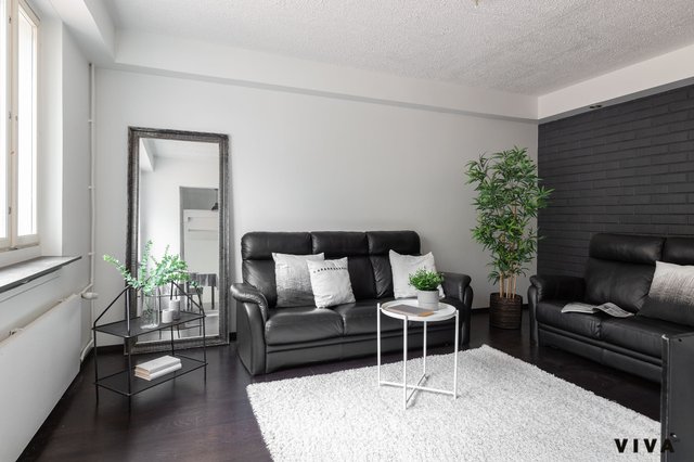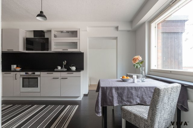 Tämä koti on ilmava ja selkeä kaksio, joka on aiemmin ollut kolmio. Fiksu pohjaratkaisu tekee tilasta toimivan ja kodikkaan. Keittiö on juuri remontoitu – mustaa ja valkoista, ajattoman tyylikästä – ja kylpyhuone on siisti, käytännöllinen ja valmis käyttöön ilman remonttihuolia.