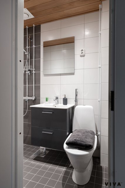 - WC-istuin, suihku, allaskaappi, peili, pesuallas, ja bidee-suihku
