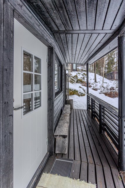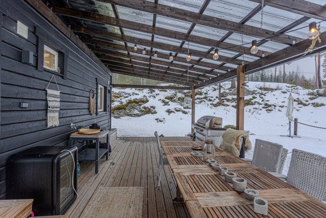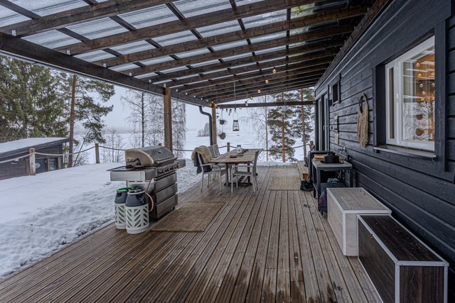 - Katettua ja avointa terassitilaa päärakennuksen jatkeena.