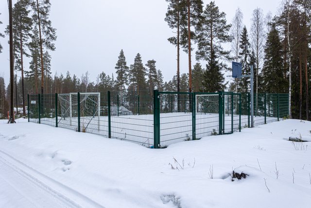 - Tontilla nurmikkoa, istutuksia ja aidattu tenniskenttä. Suurin osa tontista on luonnontilassa.