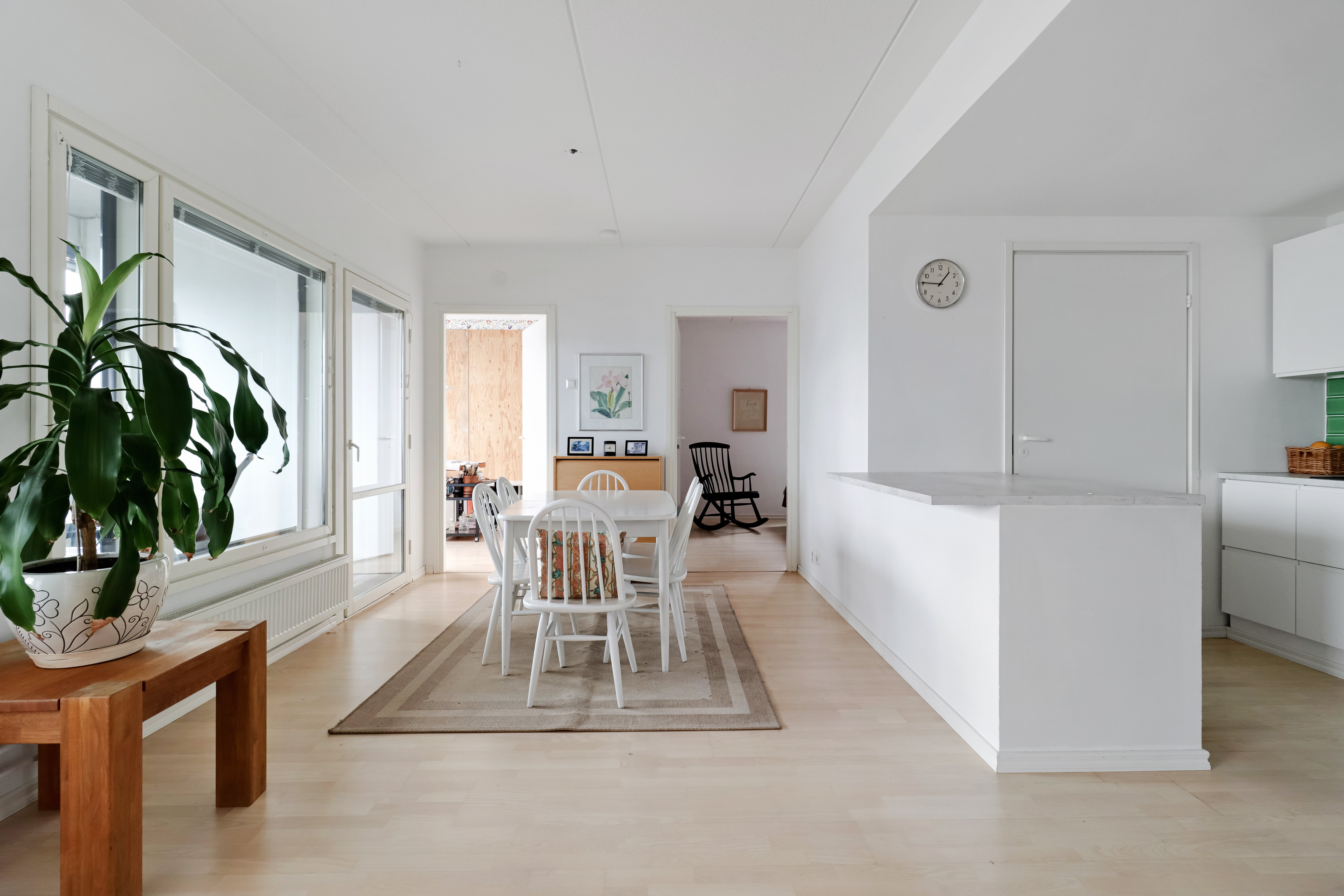 Huoneiston remontit: 12.2023 eteisen kaapiston vaihtaminen. Samalla puretaan edellisen asukkaan eteisen puoliväliin tekemä kevyt väliseinäke ja puretaan oviaukon madallus takaisin alkuperäiseen + seinien maalaus.