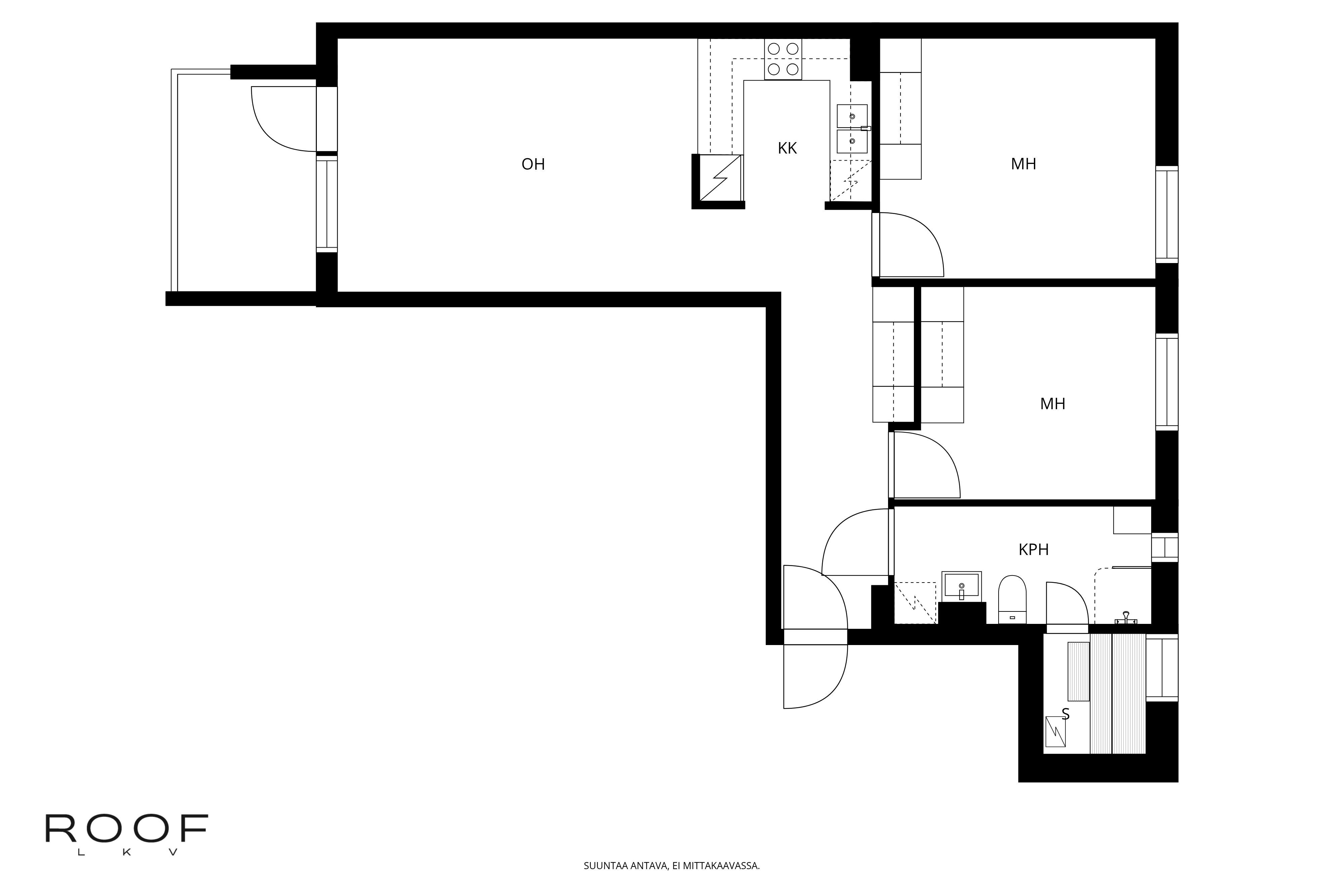 - Isännöitsijäntodistuksen mukainen, (Pinta-ala ei ole tarkistusmitattu ja todellinen pinta-ala voi olla suurempi tai pienempi, kuin ilmoitettu)