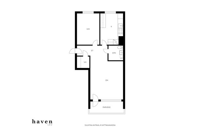 - Ei tarkistusmitattu. Pinta-alat saattavat tämän ikäisissä kohteissa (yhtiö rekisteröity ennen 01.01.1992) poiketa olennaisestikin asuinrakennusten nykyisten mittaustapojen ja standardien (SFS 5139) mukaan laskettavasta asuintilojen pinta-alasta. Pinta-ala voi siis olla edellä mainittua pienempi tai suurempi.