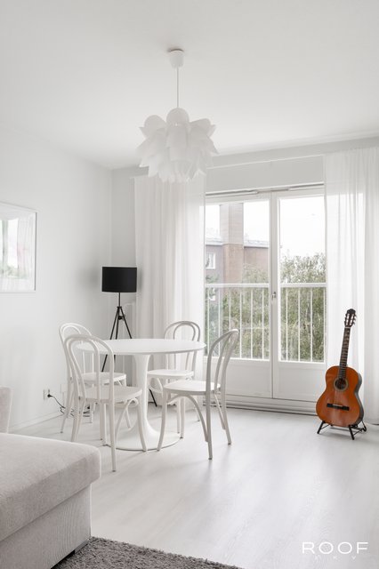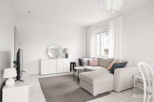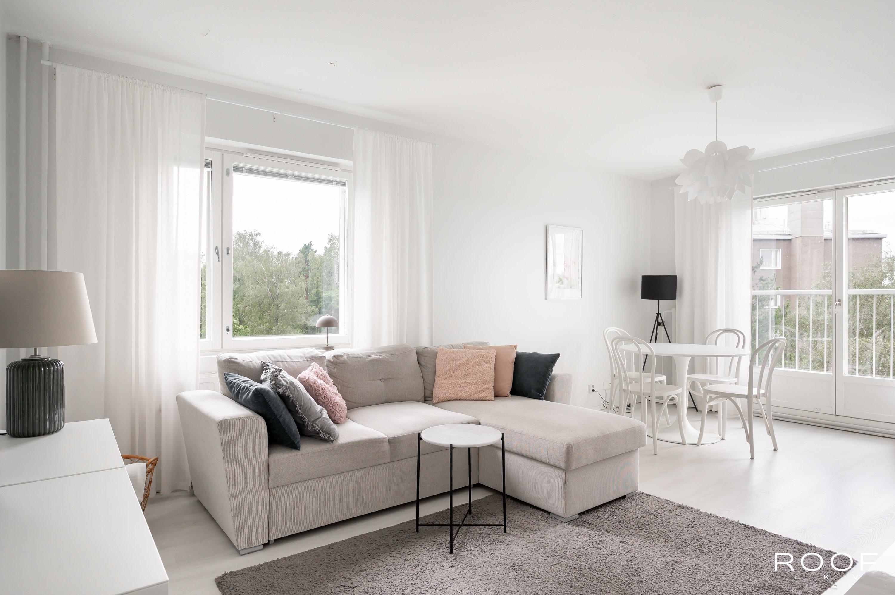 Tämä upea, kulmassa sijaitseva asunto hurmaa valollaan ja toimivalla pohjaratkaisullaan. Suuret ikkunat päästävät luonnonvalon virtaamaan huoneisiin, mikä luo avaran ja kutsuvan tunnelman.