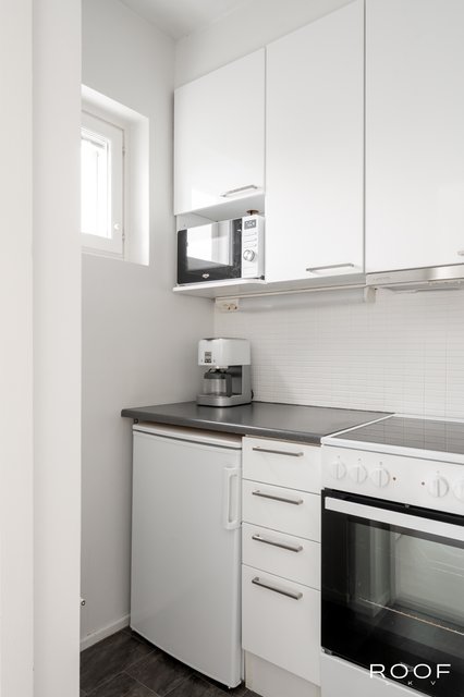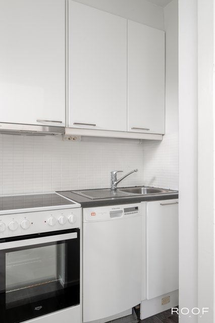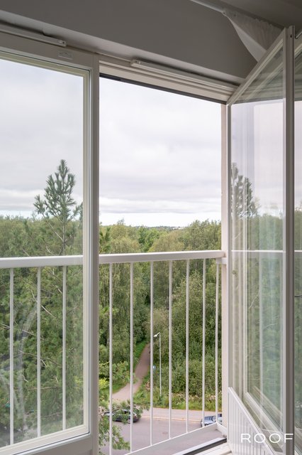 Keittiö on kompakti mutta käytännöllinen, sieltä löytyy kaikki oleellinen, myös astianpesukone. Avarasta olohuoneesta aukenee ovet ranskalaiselle parvekkeelle, josta avautuvat upeat puistomaiset näkymät. Makuuhuone on tilava ja varustettu hyvillä säilytysratkaisuilla. Kylpyhuoneeseen mahtuu pyynkinpesukone.