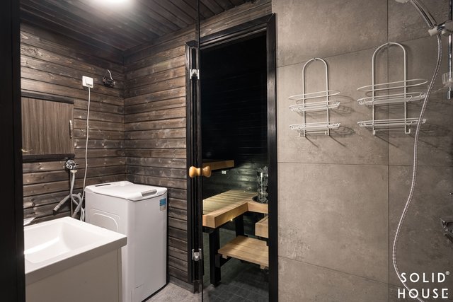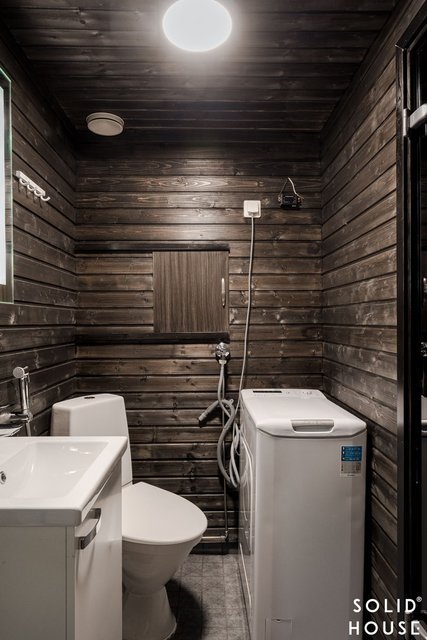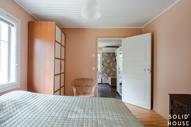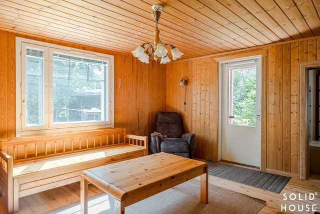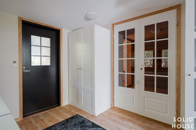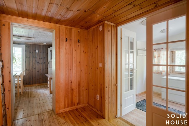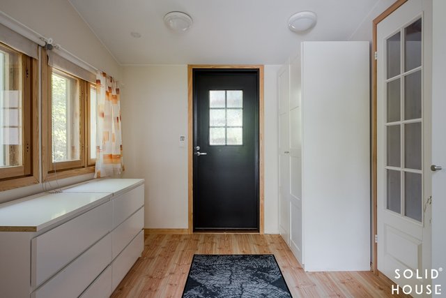 - Wc / pesutila: wc-istuin, allaskaappi, suihku, peili, kiinteät valaisimet, Pk-liitäntä, pesukone, vesivaraaja, lattalämmitys. Lattia laattaa, seinät laattaa ja puuta.