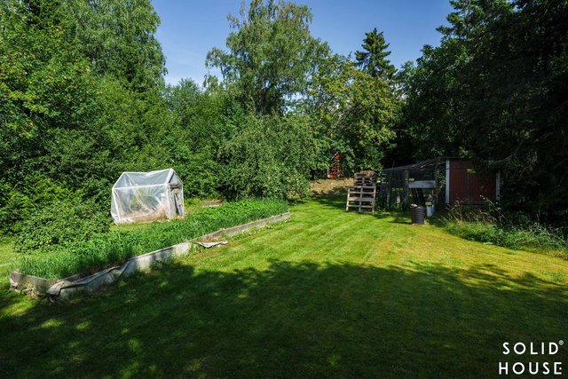 Suojaisella 2182 m2 tontilla kasvatat oman maan makoisat mansikat, ne ensimmäiset uudet perunat ja juurekset, kuin myös ihanat yrtit.