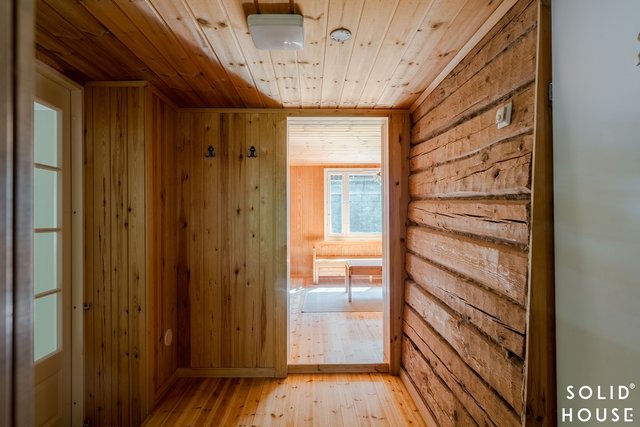 - Eteinen. Lattia puuta, seinät hirttä ja puuta.