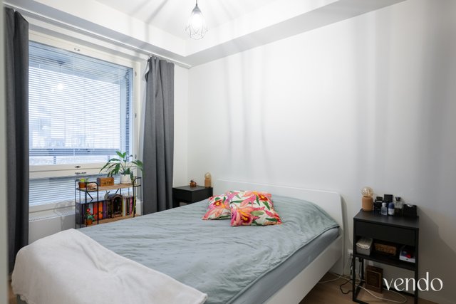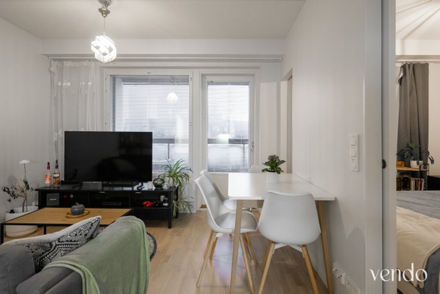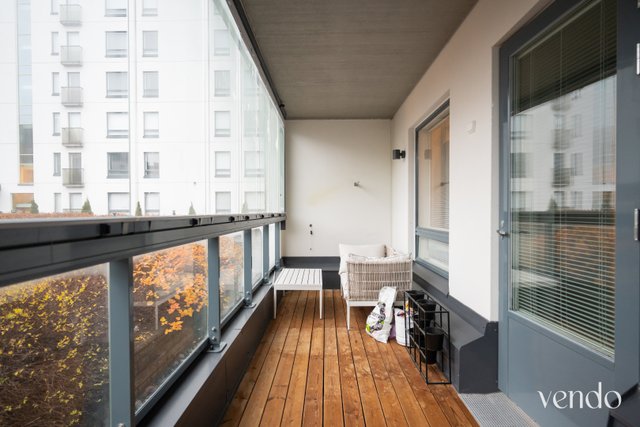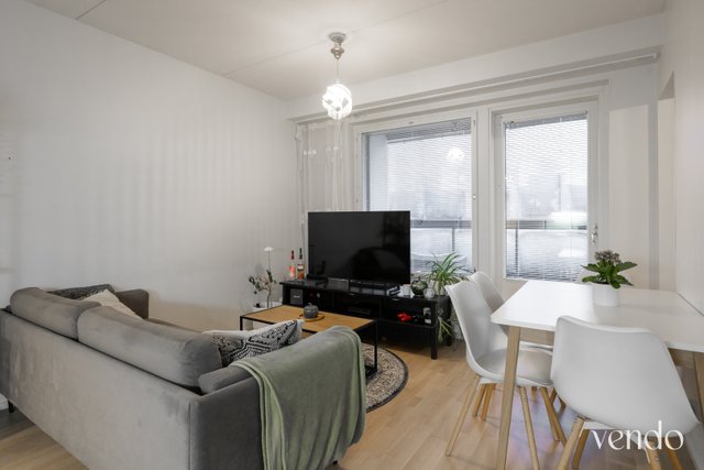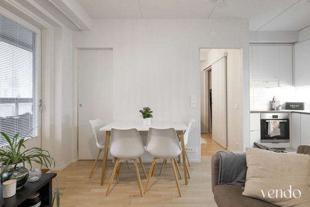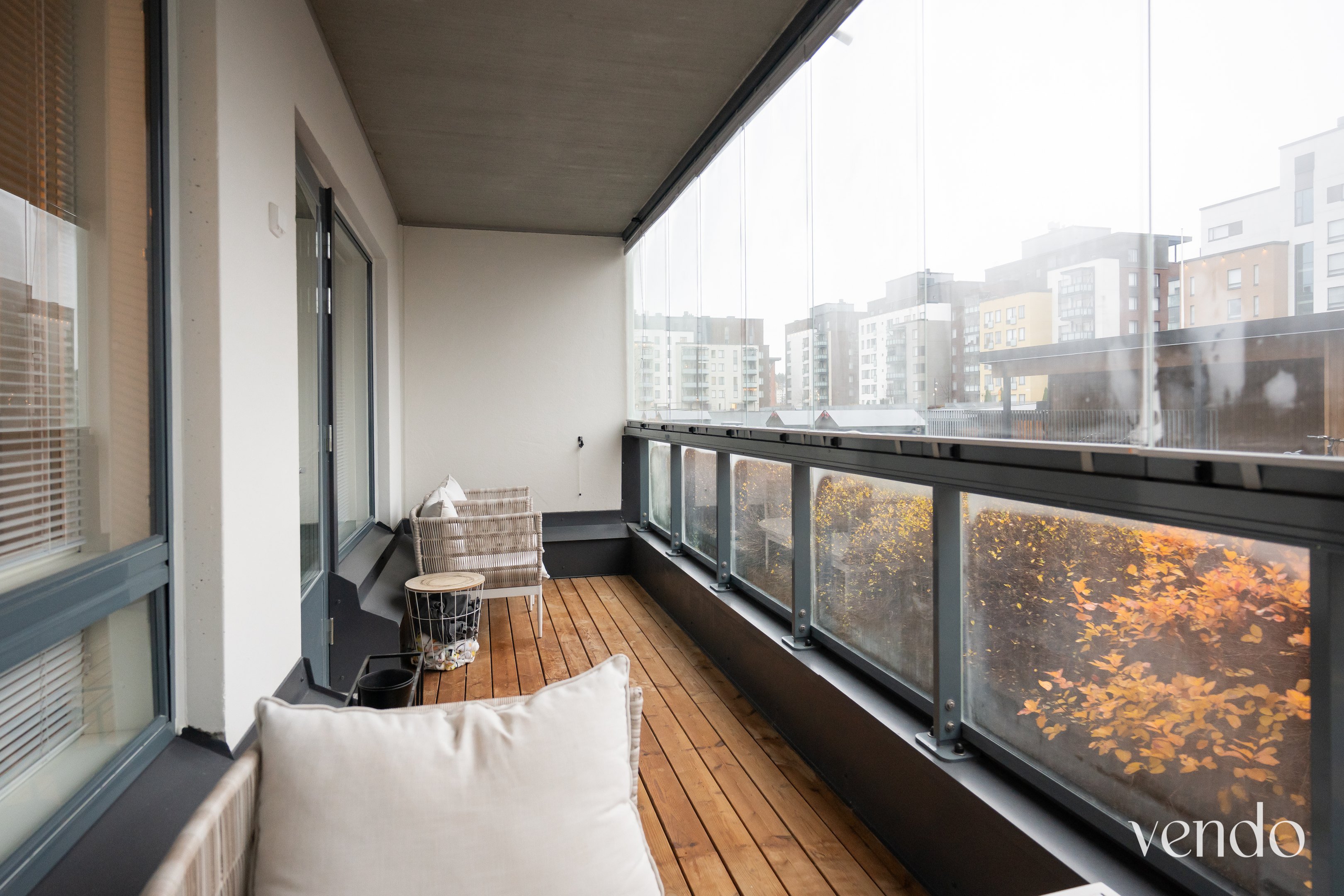 Loistosijainti, selkeä pohja ja suuri lasitettu parveke. Neutraalit värit ja parkettilattiat.