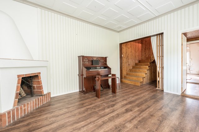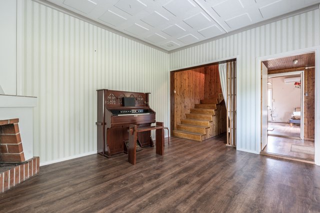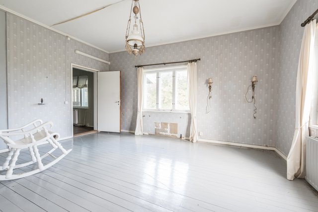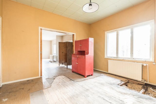 - Osassa huonetiloista on lautalattia, osassa 1950-1960 lattiamattoa. Keittiössä ja alakerran hallitilassa on laminaattia.