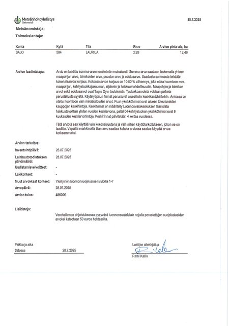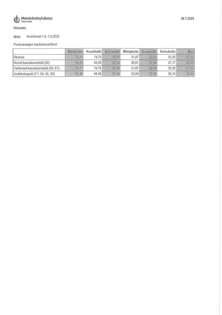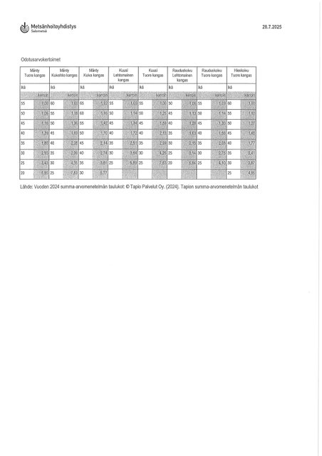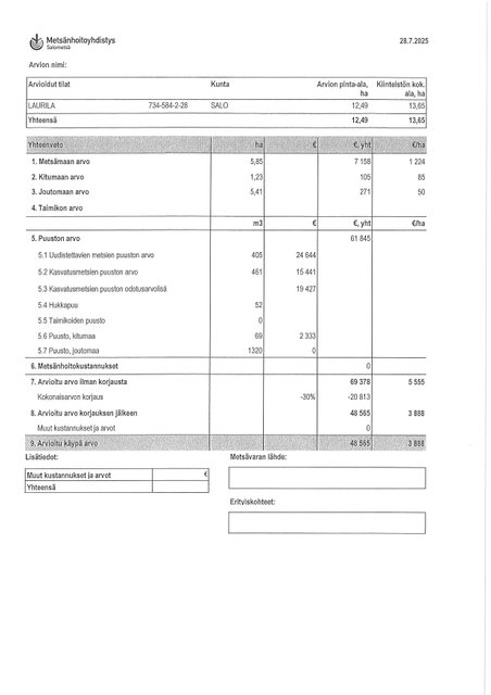 Kohde myydään tarjousten perusteella. Kirjalliset tarjoukset (koko alueesta, metsästä tai talouskeskuksesta) pyydämme toimittamaan toimistoomme viimeistään tiistaina 2.12.2025 klo 13:00. Myyjä pidättää itsellään oikeuden hyväksyä tai hylätä tarjoukset. Lisätietoja antaa Toni Tammi, puh 0400 740 404, [email protected] tai www.tt-valitys.fi.Pohjakuva