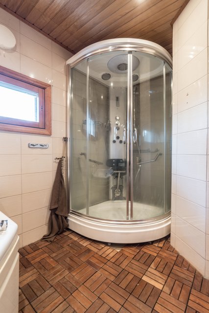 - Poreamme, suihkukaappi, peili, pesuallas, allaskaappi, ja lattialämmitys