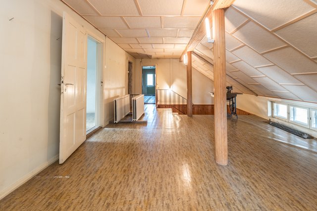 - Yläkerrassa on suurehkot ullakkotilat. Lisäksi on kellaritila, johon on kulku talon päädystä. Kellarissa on myös tekninen tila.